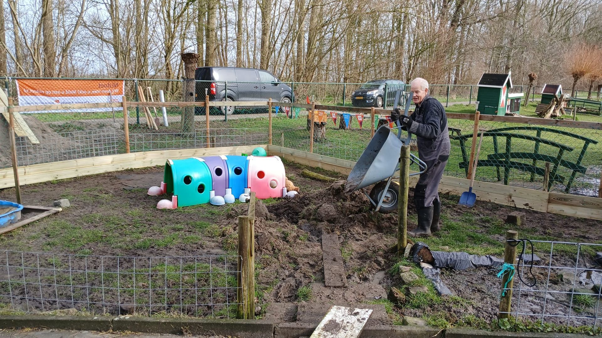 We hebben Ut Parkie helpen opknappen. Kuilen vullen, tegels leggen, hokken repareren, zandbak onkruid vrij maken. Het was een gezellige dag met een zonnetje. De dieren scharrelden rustig om ons heen.
